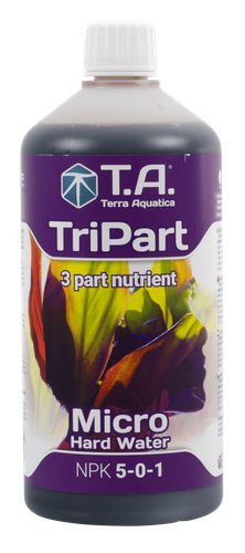 Dostępny w wersji do twardej lub miękkiej wody, TriPart® Micro stanowi fundament systemu "building-block", dostarczając mikro i submikroelementy oraz niektóre dodatkowe makroelementy. TriPart® Micro należy stosować zgodnie z zaleceniami przez cały okres wzrostu i kwitnienia.