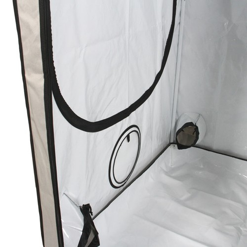 Wnętrze namiotu pokryte jest specjalnym materiałem PAR+, który równomiernie odbija światło i kieruje je bezpośrednio na rośliny, zwiększając efektywność fotosyntezy oraz redukując straty energii. Dzięki temu rośliny rosną szybciej, mają intensywniejszy kolor i obfitsze kwitnienie.