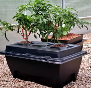 - System hydroponiczny DWC na 2 rośliny. W systemach DWC Oxypot system korzeniowy roślin jest w całości zanurzony w wysoko natlenionej pożywce w zbiorniku uprawowym.