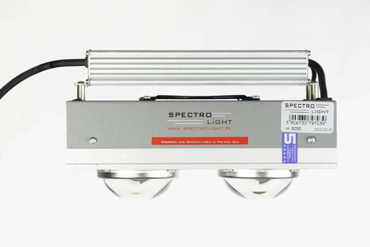 - SPECTROLIGHT STARTER 250W przewyższa parametrami i efektami klasyczne lampy HPS 400W. Tak samo jak w mocniejszym modelu mamy pełne widmo oparte na diodzie COB DualBand z najnowszej dostępnej obecnie generacji.