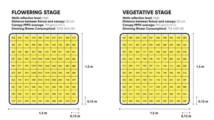 Dzięki ciągłym postępom w technologii diod, firma LUMATEK zwiększyła fotosyntetyczny strumień fotonów, zwiększając ogólną dostępność fotonów w obszarze wzrostu o 10%. Ten ulepszony model skutecznie pokrywa przestrzeń o wymiarach 1,5 x 1,5 m, odpowiednią zarówno dla fazy wegetatywnej, jak i kwitnienia roślin.