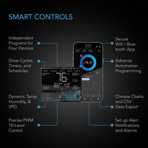 Połącz system ze smartfonem przez Wi-Fi lub Bluetooth i zarządzaj warunkami uprawy zdalnie – z dowolnego miejsca, w dowolnym czasie.