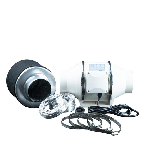 Kompletny zestaw wentylacyjny 100 mm z filtrem węglowym 160 m³/h. W skład wchodzi wentylator kanałowy, filtr węglowy, przewód 2 m oraz opaski zaciskowe. Idealny do szklarni, kuchni, biur i innych pomieszczeń wymagających skutecznej filtracji powietrza i neutralizacji zapachów. Sprawdza się zarówno w zastosowaniach domowych, jak i przemysłowych, gwarantując wydajną wentylację i neutralizację zapachów.