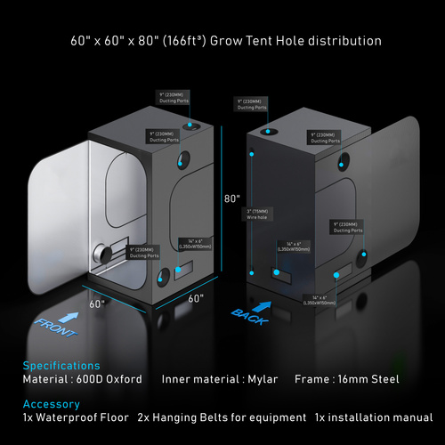 Growbox VF150 (150×150×200 cm) to profesjonalny namiot do uprawy roślin w warunkach indoor — idealny do upraw hydroponicznych i tradycyjnych. Dzięki solidnej, stalowej konstrukcji oraz wysokiej jakości materiałom zewnętrznym i refleksyjnym włóknom wewnętrznym, namiot zapewnia stabilne i kontrolowane środowisko do wzrostu oraz kwitnienia roślin.